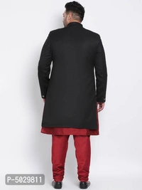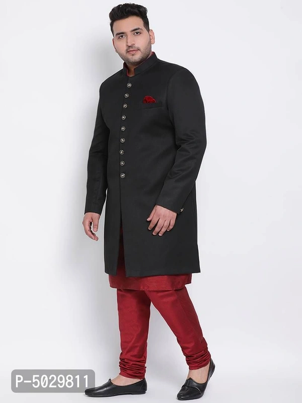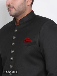 Fabric: Polyester Viscose; Fit: Regular Fit; Neck: Bandhgala; Sleeves: Full Sleeve; Length: Long.