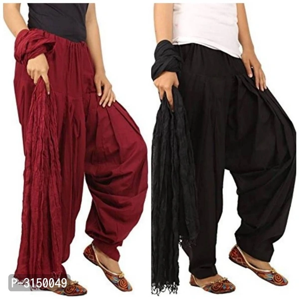 Semi patiala salwar with dupatta combo of 2 sets. Free size fit upto xxxl . 100% cotton Fabric. Length 41 Inches. Dupatta 2 Meters.