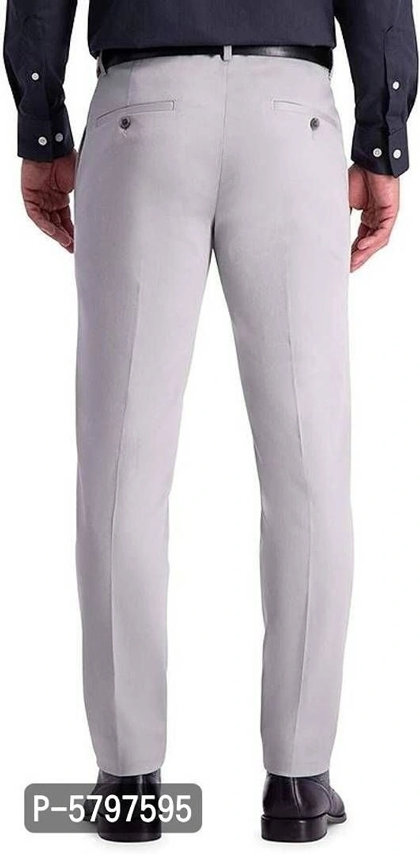 Elegant Light Grey Polycotton Regular Fit Solid Formal Trousers For Men