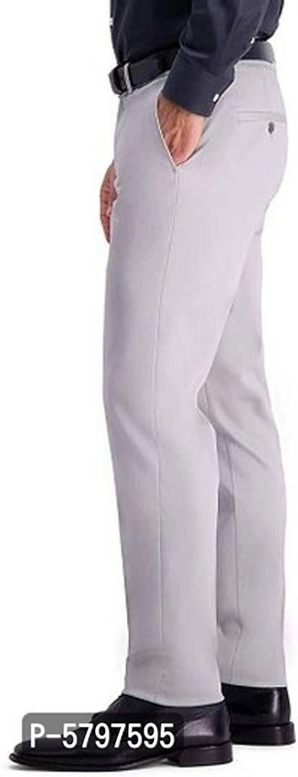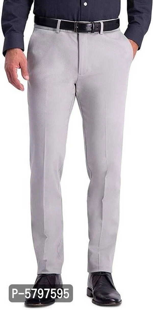 Elegant Light Grey Polycotton Regular Fit Solid Formal Trousers For Men