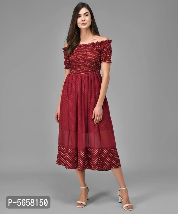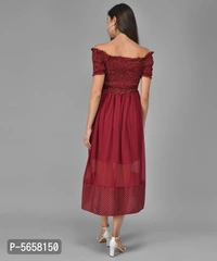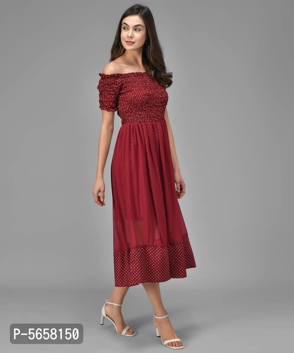A Women's Western Wear Brand. It Is Made With Finest Polyester Fabric Which Is Very Soft And Feels Great To Wear. It Is Maxi Polka Dot Dress With Fit And Flare Elegant Look.