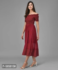 Elegant Maroon Polyester Self Design Maxi Dress For Women