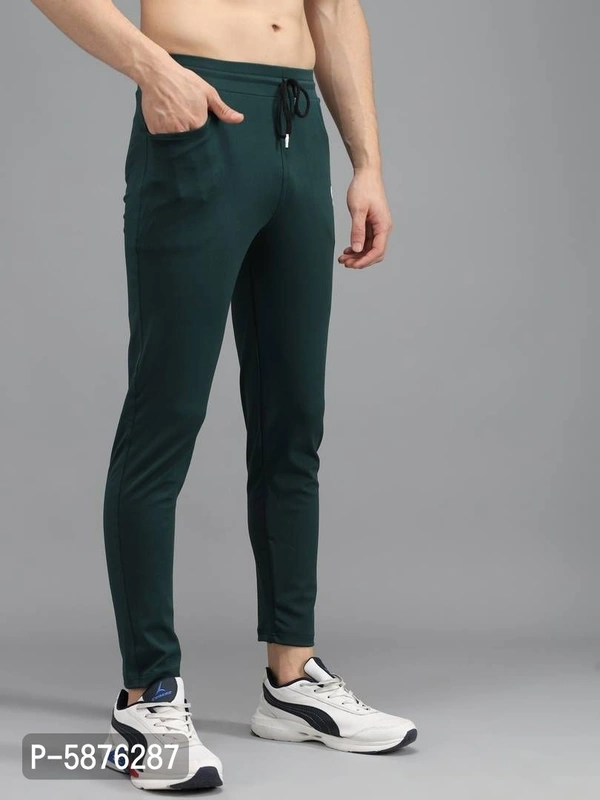 Fabulous Green 4-Way Lycra Solid Regular Track Pants For Men