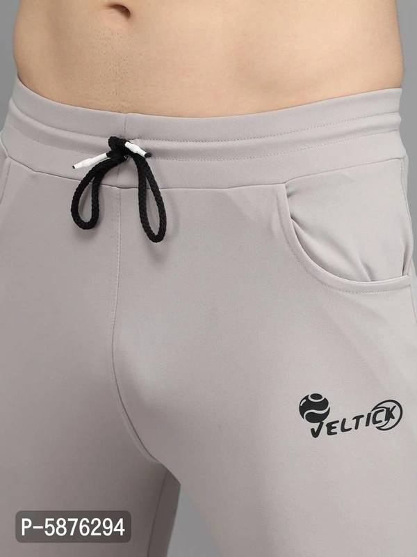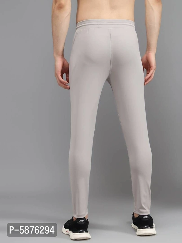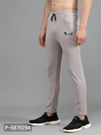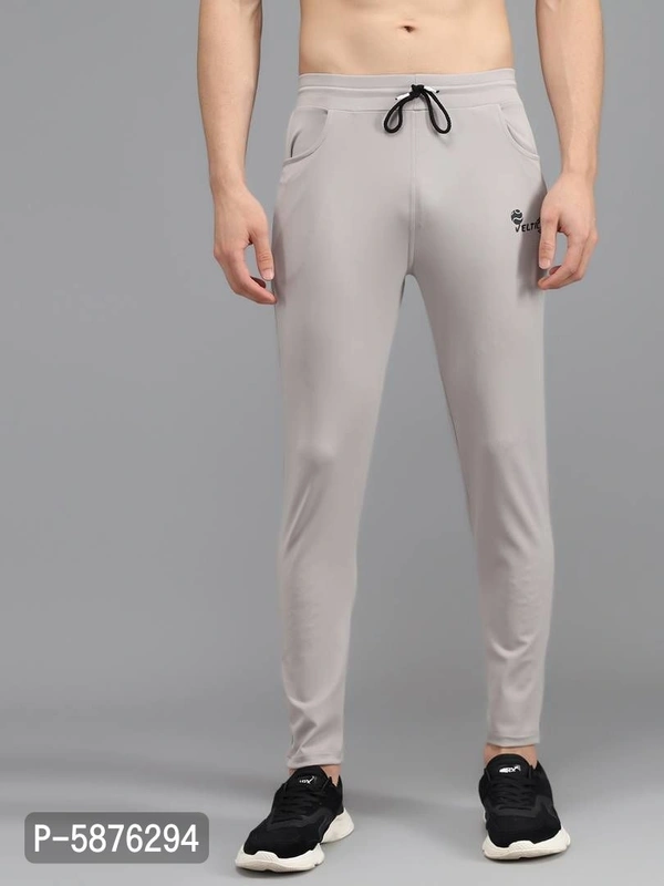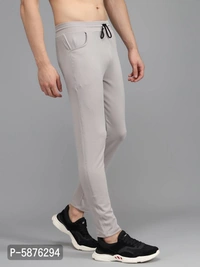 Fabulous Light Grey 4-Way Lycra Solid Regular Track Pants For Men