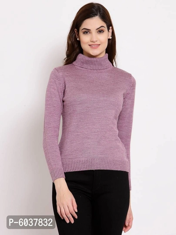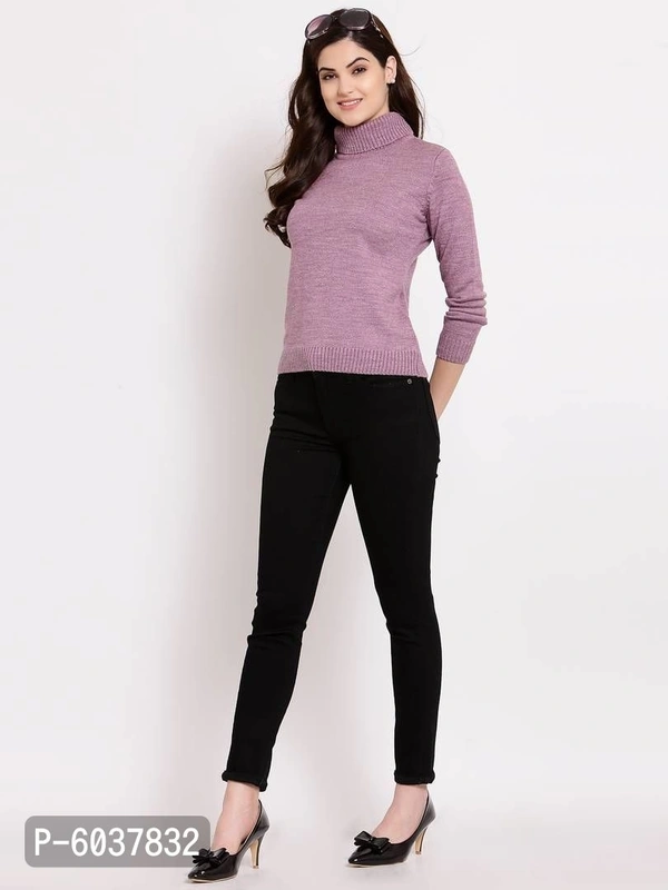 Fabulous Purple Acrylic Self Pattern High Neck Sweaters For Women