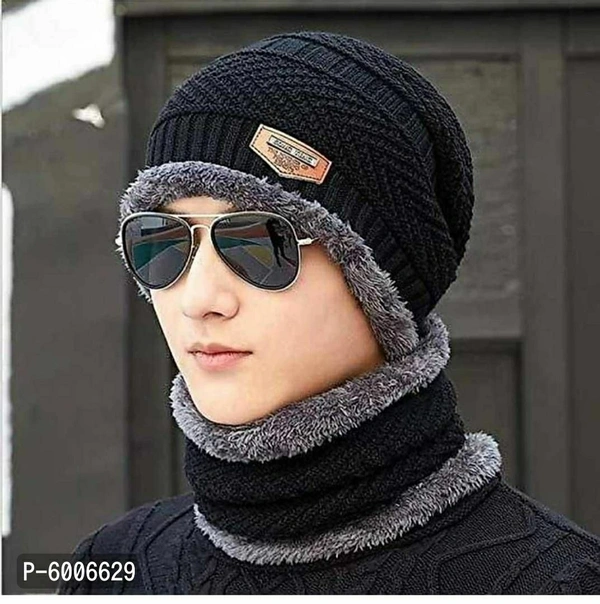 Fabulous Trendy Black Woolen Fur Caps For Men