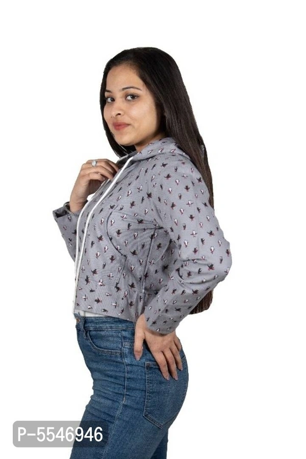 A Hooded crop Jacket , with Front pockets, draw string in cap, warm with flannel material, very soft & comfortable.