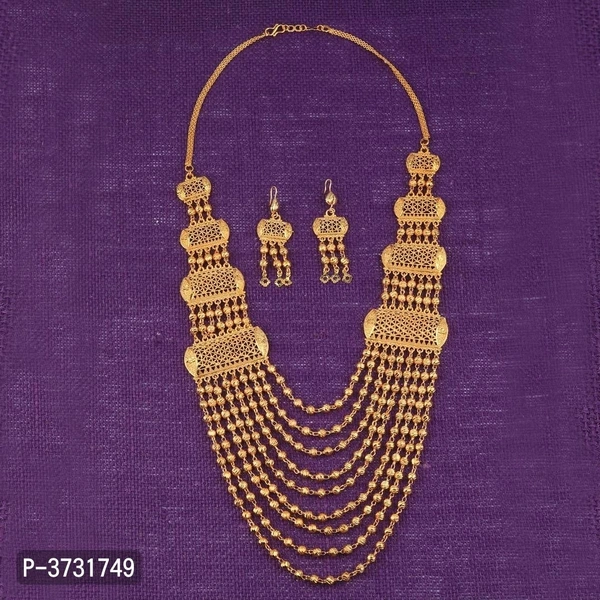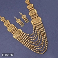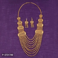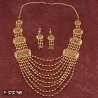 Exclusive Traditional Gold Plated Eye Cathching Necklace Set With Stunning Earring For Bridal Jewellery Set For Women And Girls,Consist Of A Necklace And A Pair Of Earring.This Jewellary Set Can Be Wear It On Different Occasion,That Can Be Adore A Women Or Girl.Necklace Is Secured With Drawstring Closure.A Pair Of Matching Earrings,Secured With Post-And-Back Closure. Stay Stylist And Keep Shinning With Jewellary.