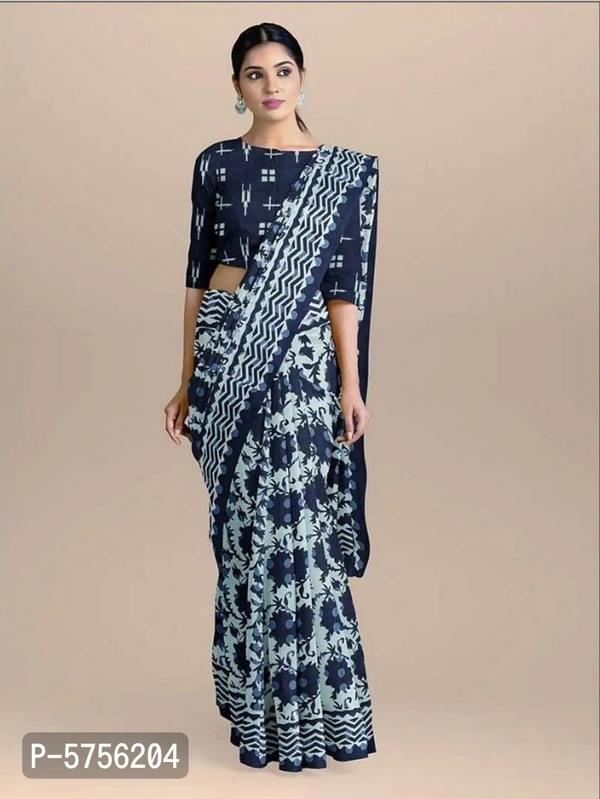 Jaipuri Printed Cotton Mulmul Saree With Blouse Piece