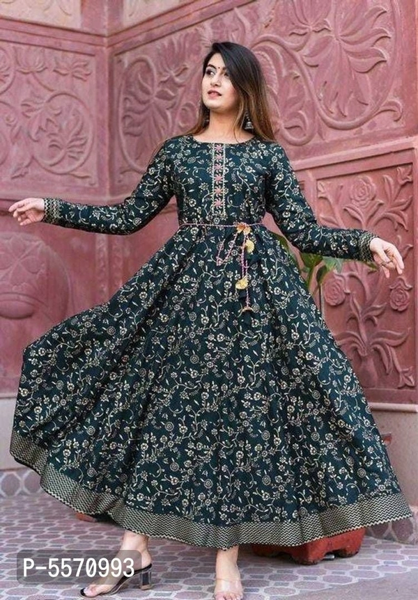 Latest Beautiful Rayon Foil Print Stitched Ethnic Gown