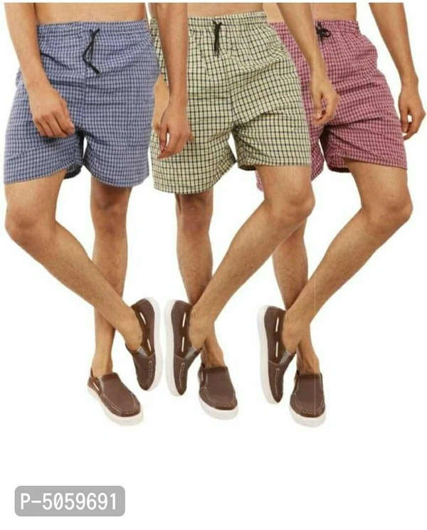 Men Cotton Check Boxer With 2 Side Pockets(Pack Of 3)