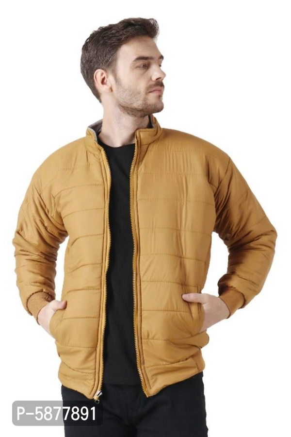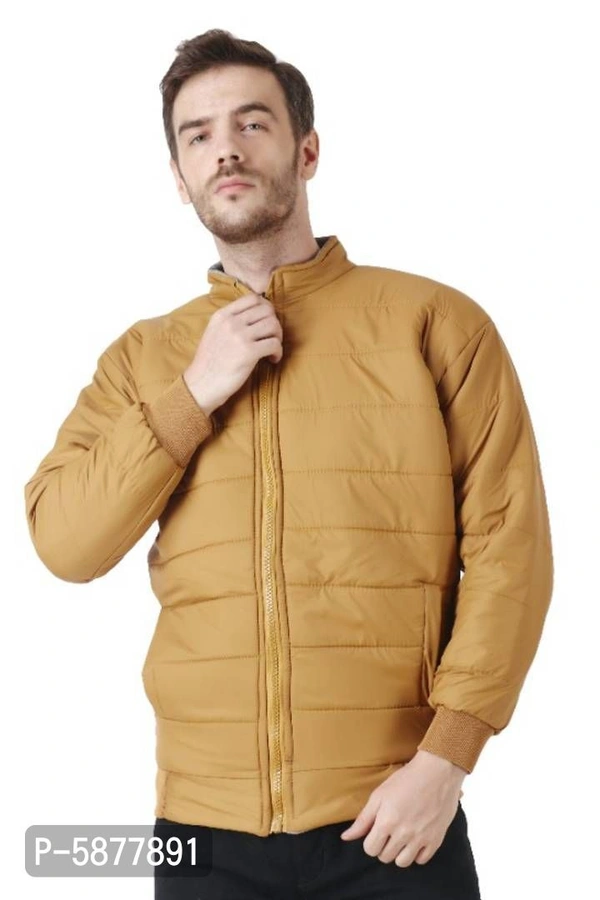 Mustard and Grey reversible Solid bomber Jacket with a mandarin collar, 4 pockets ,zip closure and long sleeves.