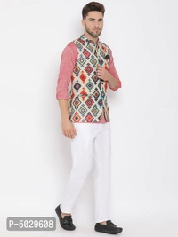RETURN: Within 7 days of delivery. Free reverse pickup. Full refund. || Fit: Regular Fit || Style: Printed || Neck: Bandhgala || Sleeves: Full Sleeve || Length: Medium.