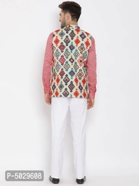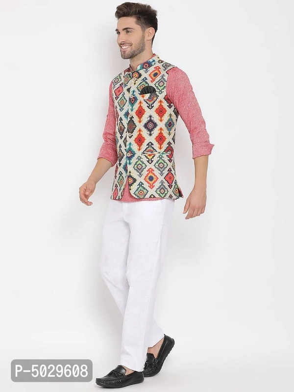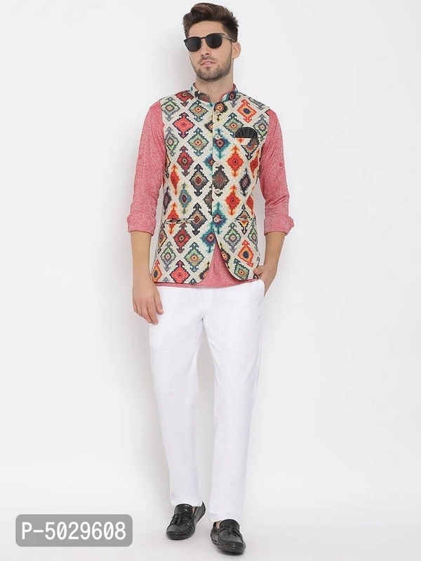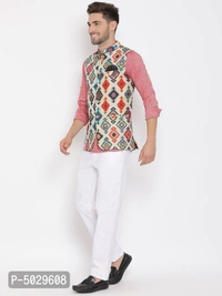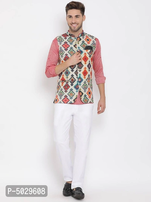 FABRIC: Polyester || TYPE: Other || DELIVERY: Within 6-8 business days However, actual date is depends on your pin code. RETURN: Within 7 days of delivery. Free reverse pickup. Full refund. || Fit: Regular Fit || Style: Printed || Neck: Bandhgala || Sleeves: Full Sleeve || Length: Medium.