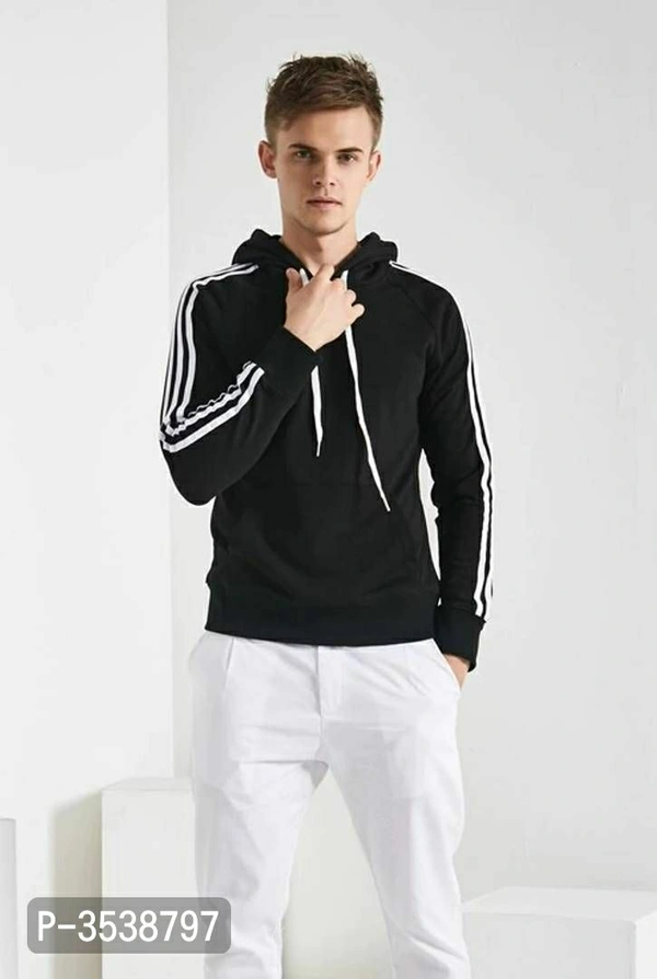 Men's Black Fleece Self Pattern Long Sleeves Regular Sports Hooded Sweatshirt