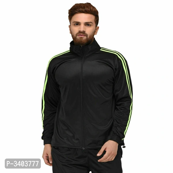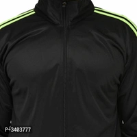 Men's Black Polyester Self Pattern Long Sleeves Sporty Jacket