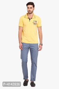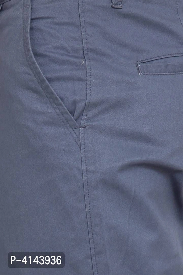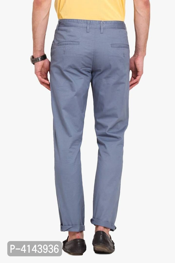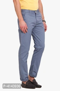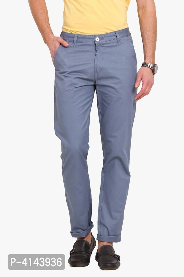Men's Blue Cotton Solid Mid-Rise Casual Regular Fit Chinos