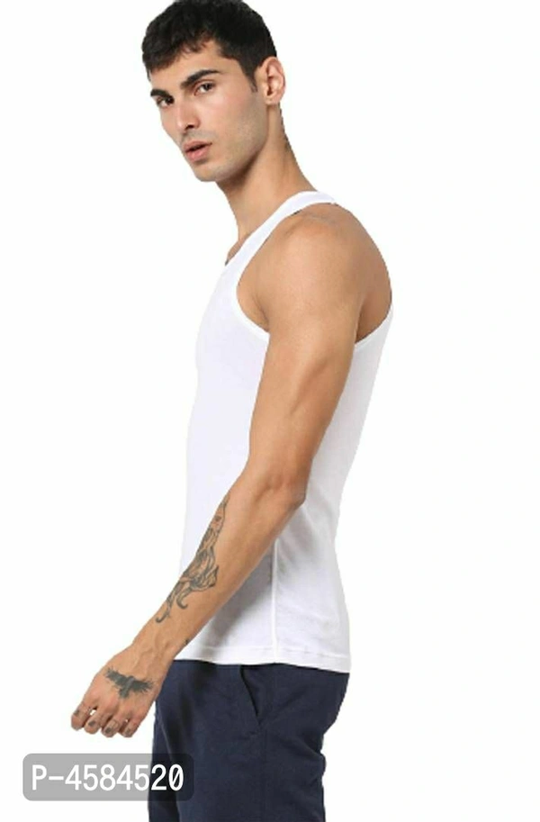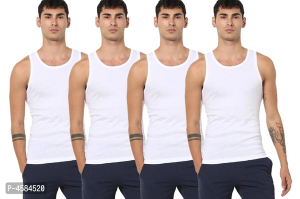 Men's Cotton Vest Pack of 4 (White_Sleeveless_Round Neck)