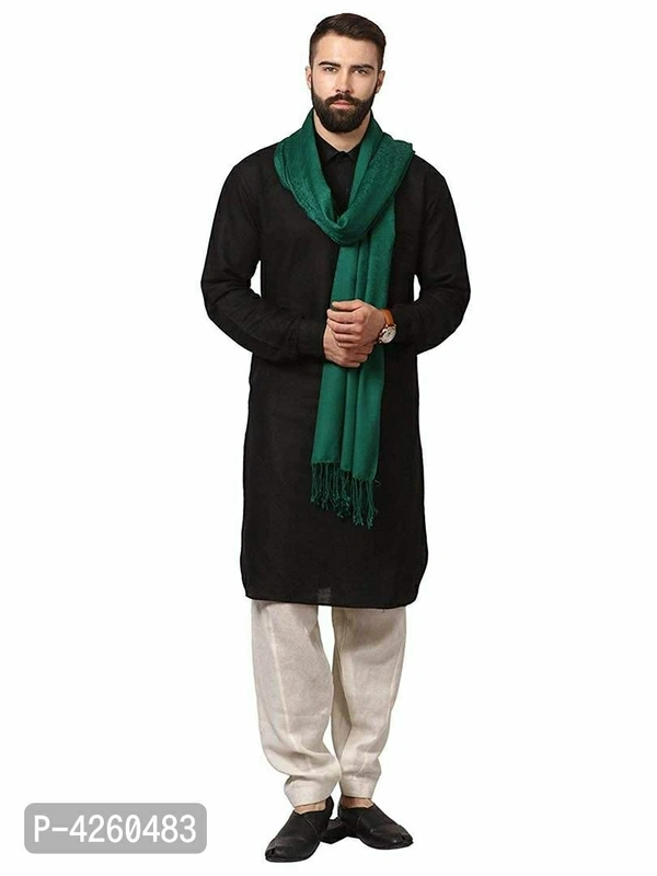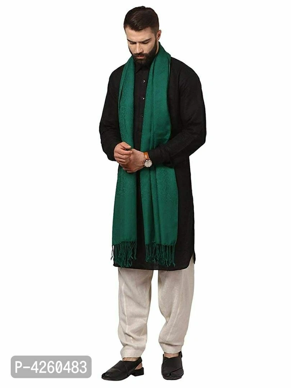 Modern Olive Wool Jaquard Woven Shawl For Men