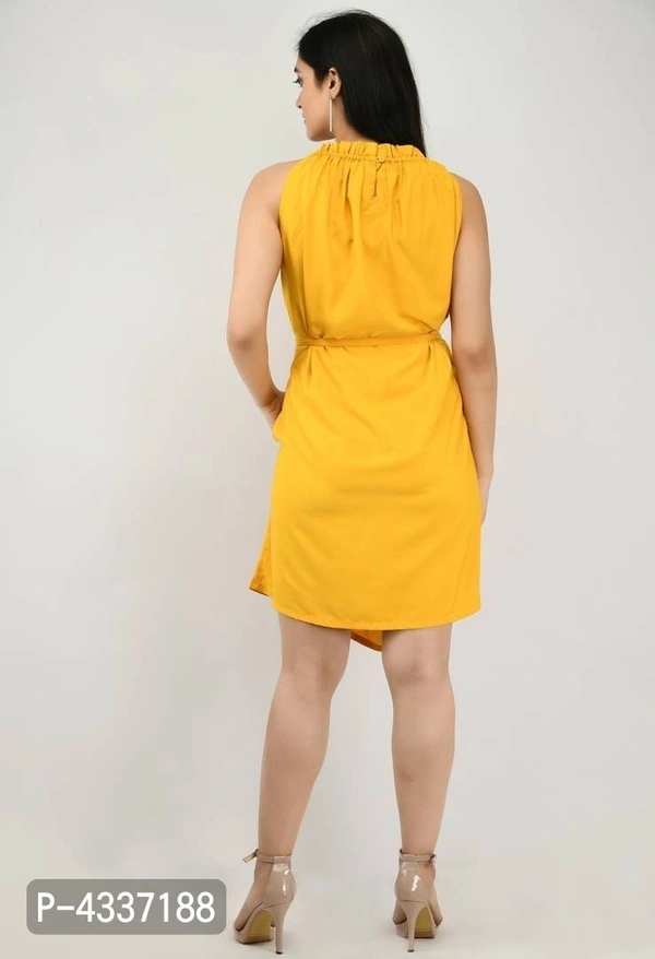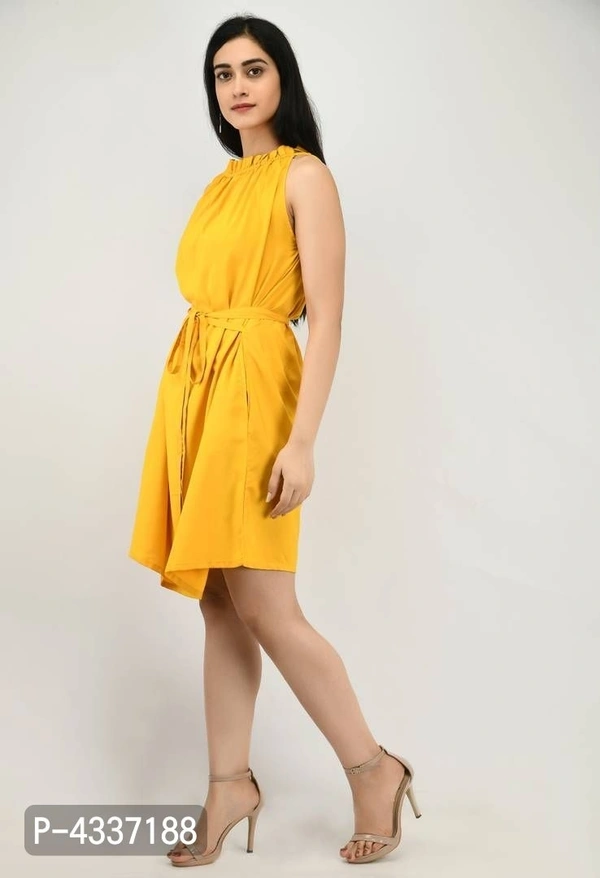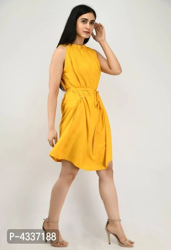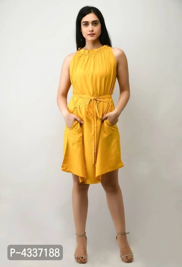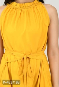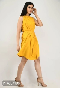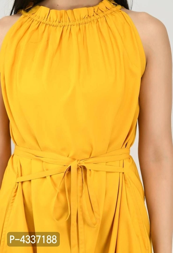 Modern Yellow Crepe Fit And Flare Dress For Women