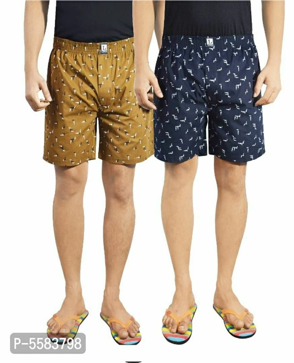 Cotton Printed and featuring a super soft waistband with logo and a covered button fly, delivering the ultimate in loose fit style and twil cotton comfort, you won't want to take these boxers off! Every pair of our levex range is designed by us # back pocket # covered functional fly button # inner elastic waistband # styles cotton prints # cotton woven fabrics # PACK OF 2