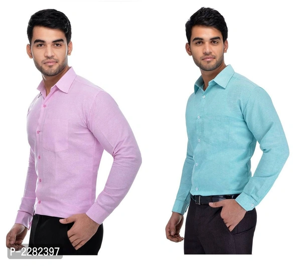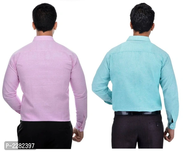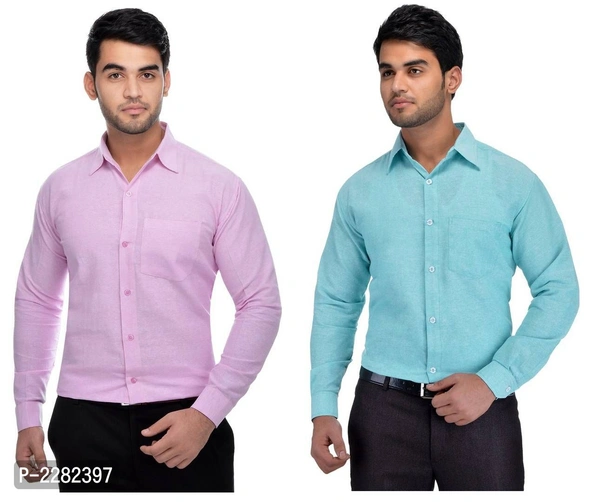 Multicoloured Khadi Solid Long Sleeve Formal Shirt (Combo of 2)