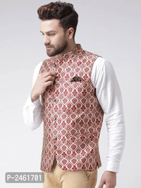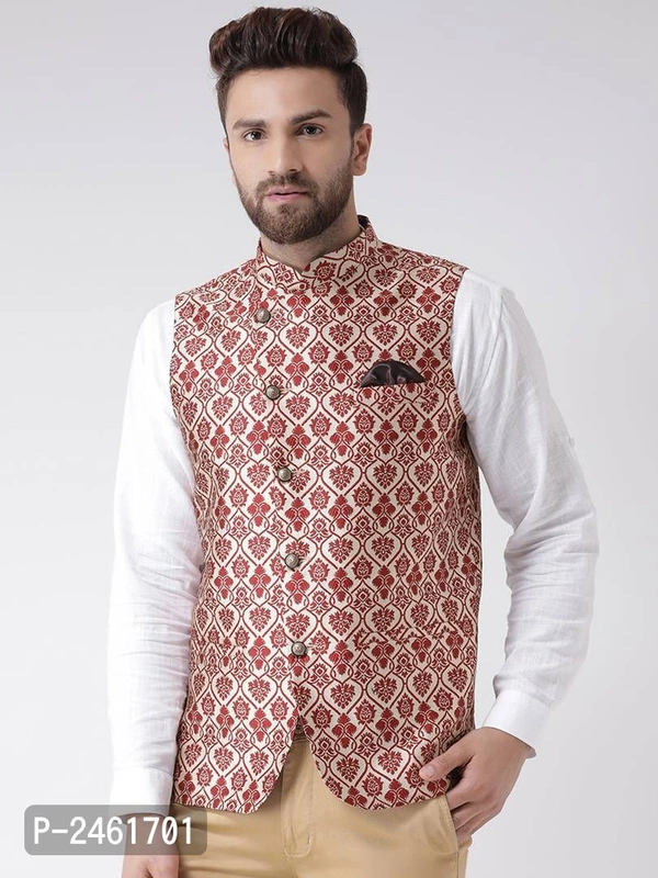 Men's Regular Fit Multi Printed Nehru Jacket; Sleeveless; Dryclean.