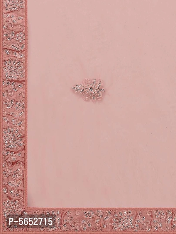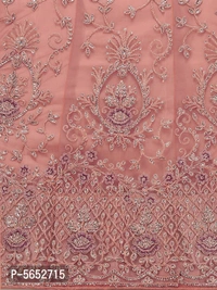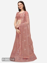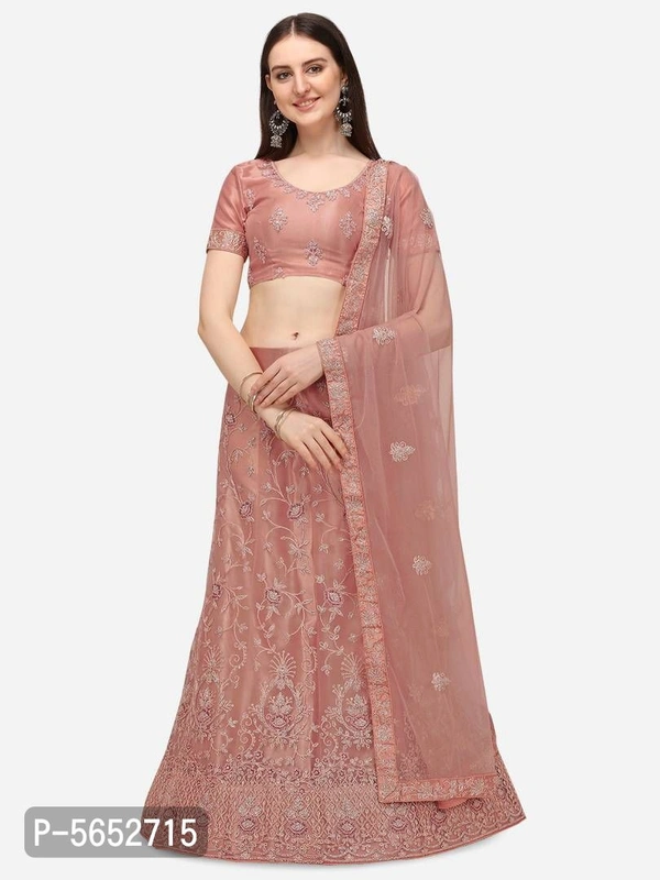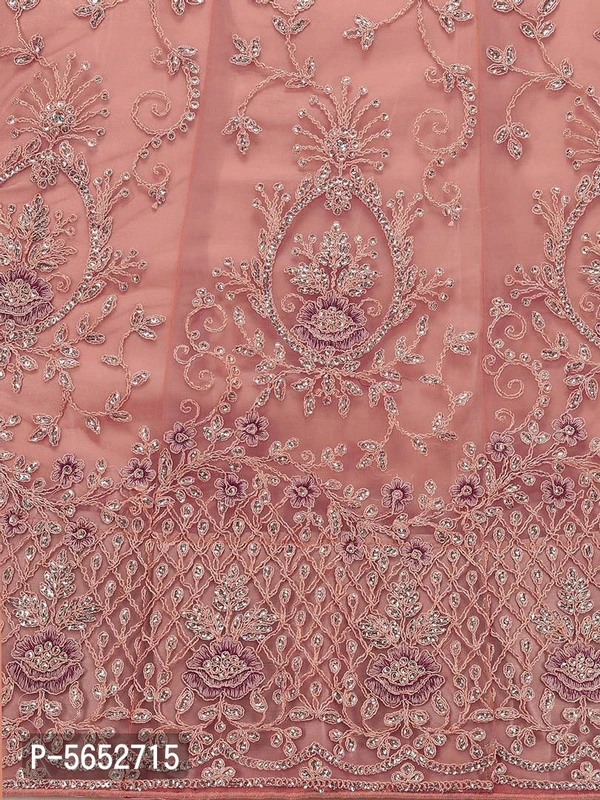 Peach Net Designer Embroidery With Silver Sequence Lehenga & Choli (Semi-Stitched)