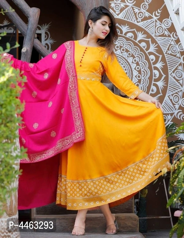 Fabric: Kurti - Rayon . Sleeves: Sleeves Are Included . Size: Kurti - M -38 in, L - 40 in, XL - 42 in, 2XL-44 Flare 80 Length: Up To 50 in Type: Stitched Description: It Has 1 Piece Kurti & duppta Work : Kurti - gold Printed