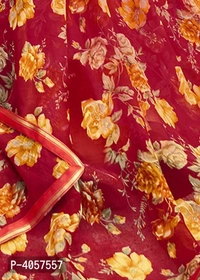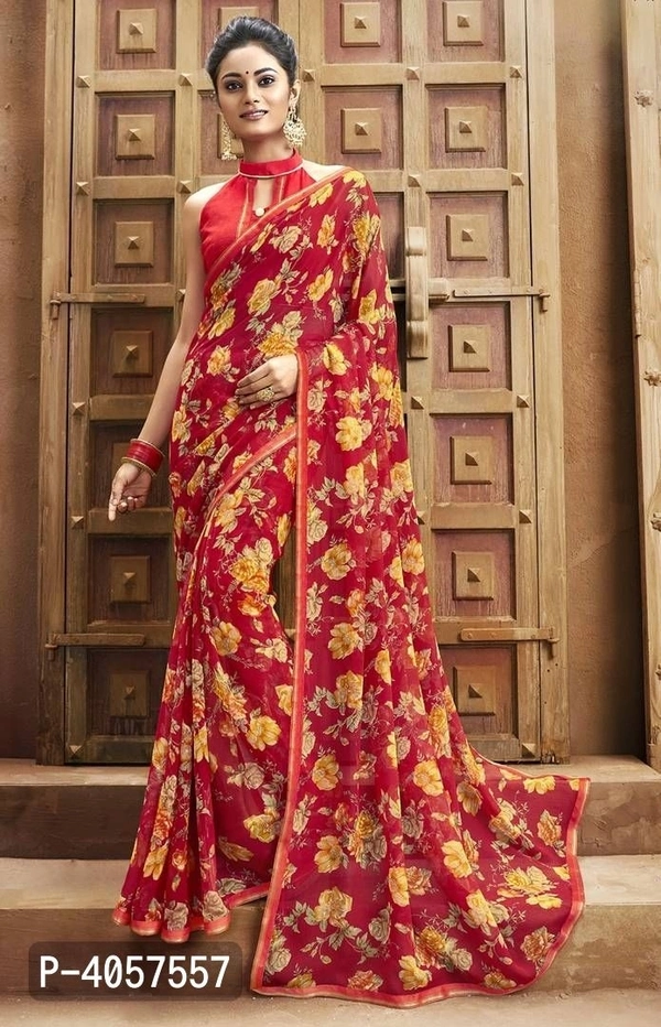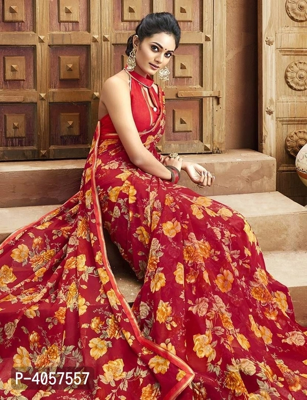 Red Colour Chiffon Casual Wear Printed Saree With Blouse Piece