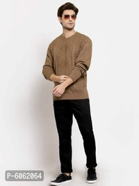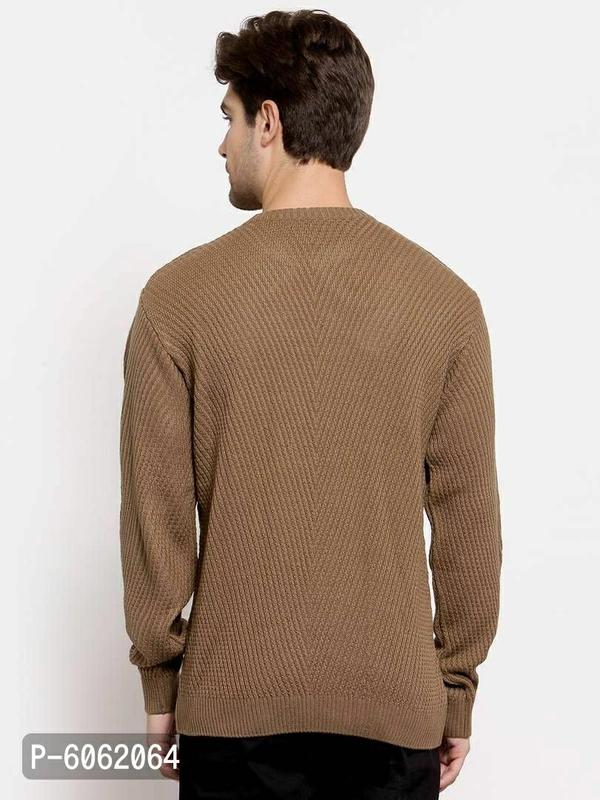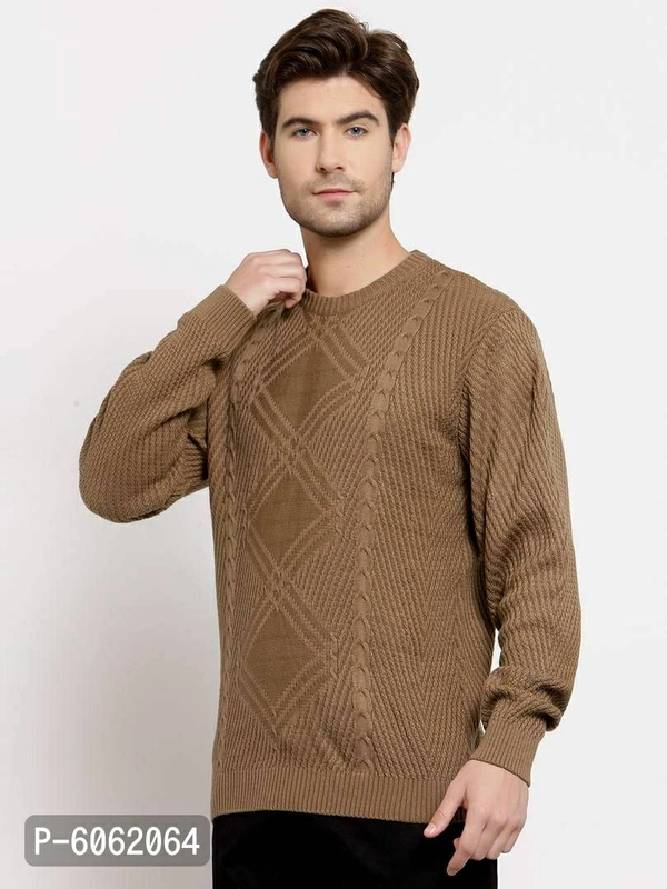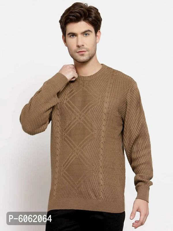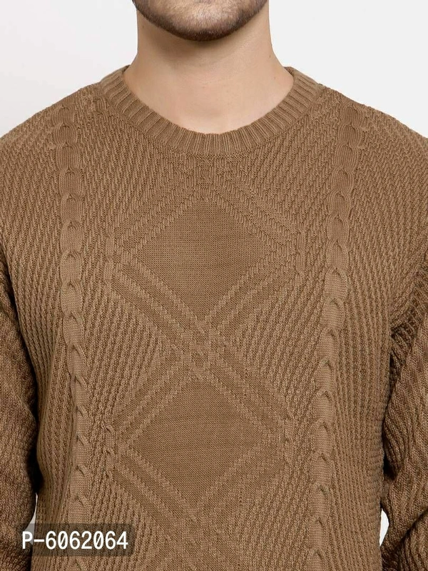 Stylish Acrylic Brown Cable Knit Long Sleeves Round Neck Sweater For Men