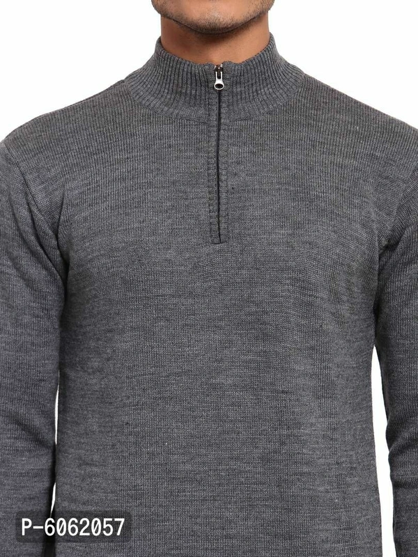 Stylish Acrylic Grey Solid Long Sleeves Half Zip Mock Collar Sweater For Men