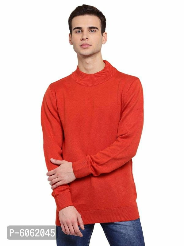 Stylish Acrylic Red Solid Long Sleeves Turtle Neck Sweater For Men