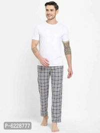 Stylish Blue Cotton Checked Lounge Pants For Men