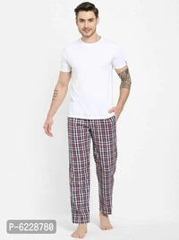 Stylish Blue Cotton Checked Lounge Pants For Men