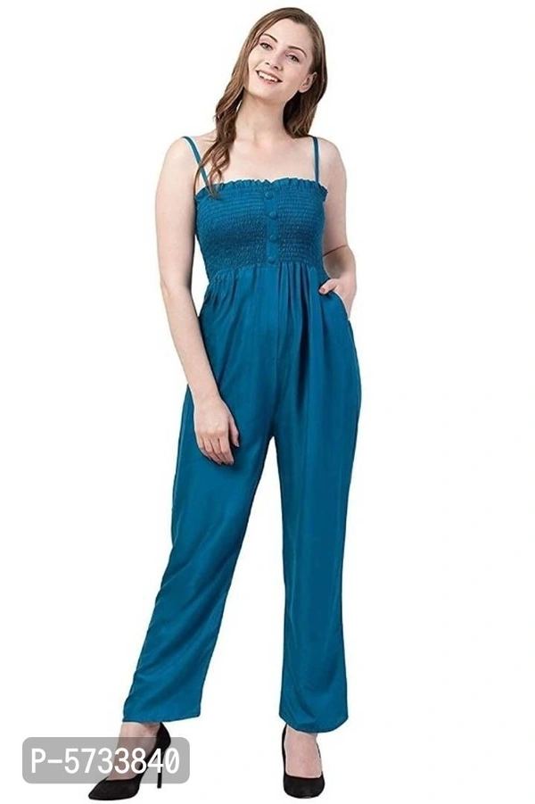 Stylish Blue Cotton Solid Jumpsuit For Women