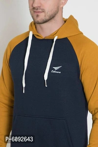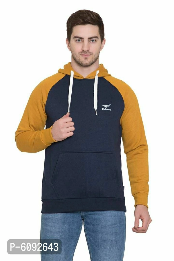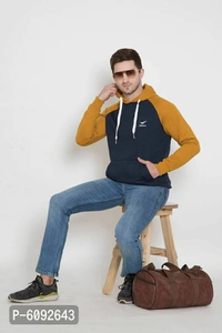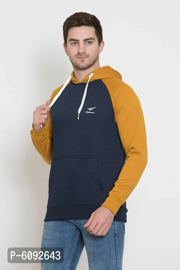 Stylish Cotton Blend Mustard Long Sleeves Regular Fit Hoodie Sweatshirt For Men