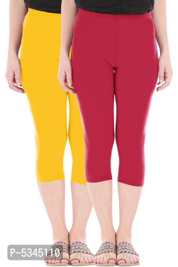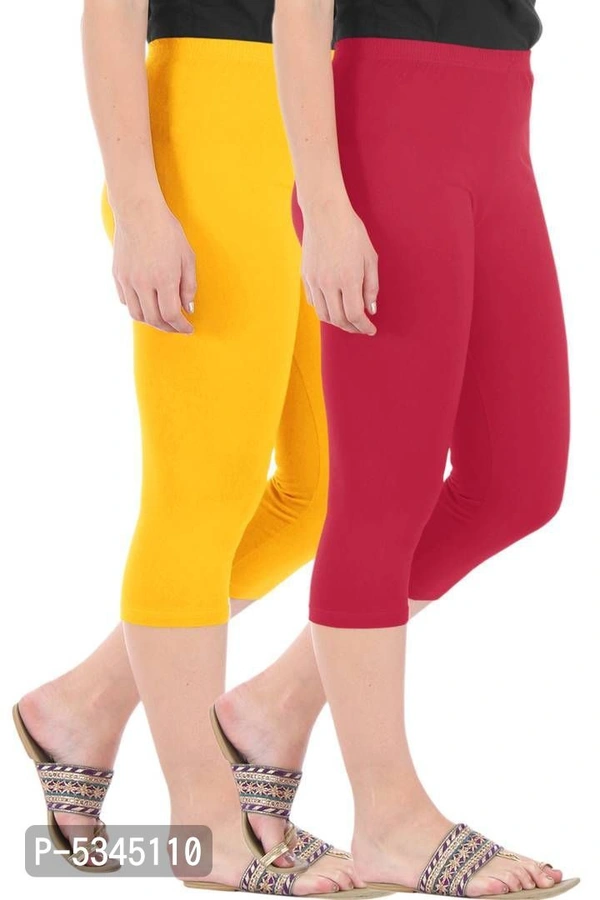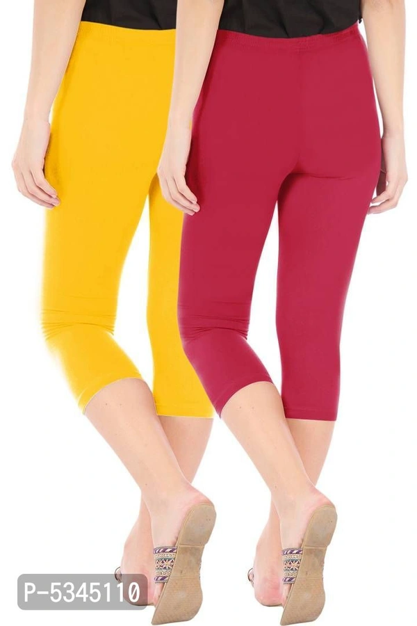 Stylish Cotton Blend Yellow & Maroon Solid Skinny Fit 3/4 Capris Leggings for Women ( Pack Of 2 )