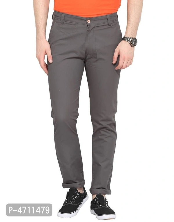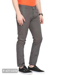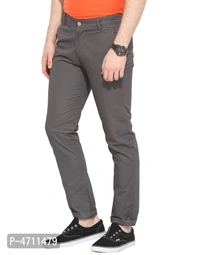 Stylish Cotton Grey Solid Smart Fit Chinos For Men