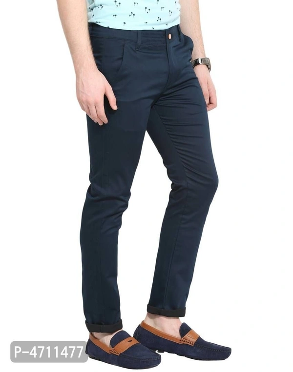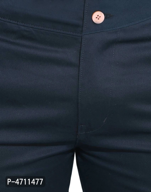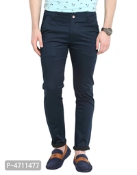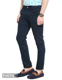 Stylish Cotton Navy Blue Solid Smart Fit Chinos For Men