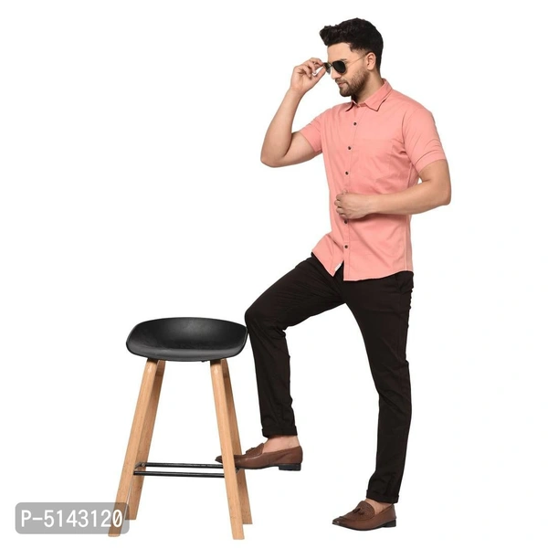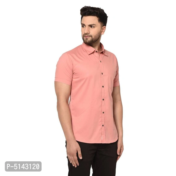 Stylish Cotton Peach Solid Slim Fit Short Sleeves Shirt For Men