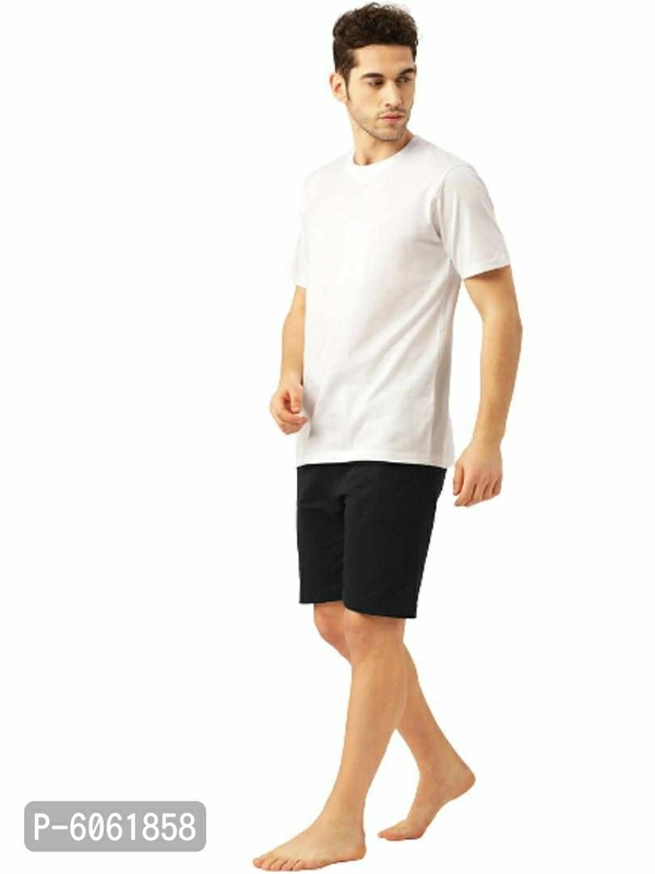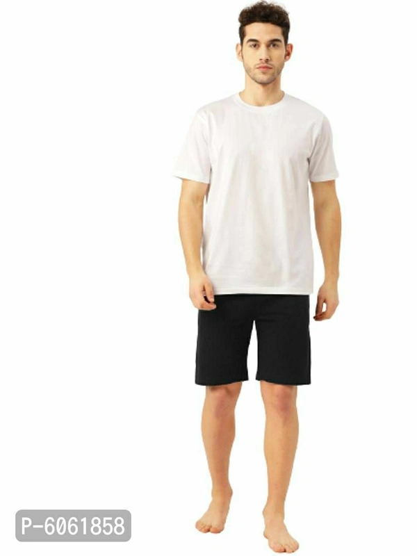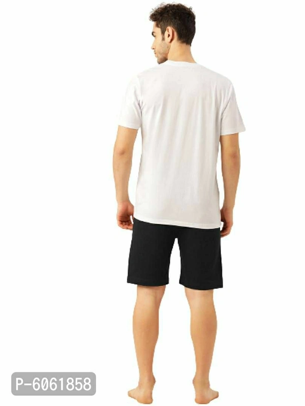Stylish Cotton White Solid Round Neck Half Sleeves T-shirt With Shorts Night Wear Set For Men