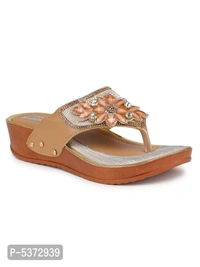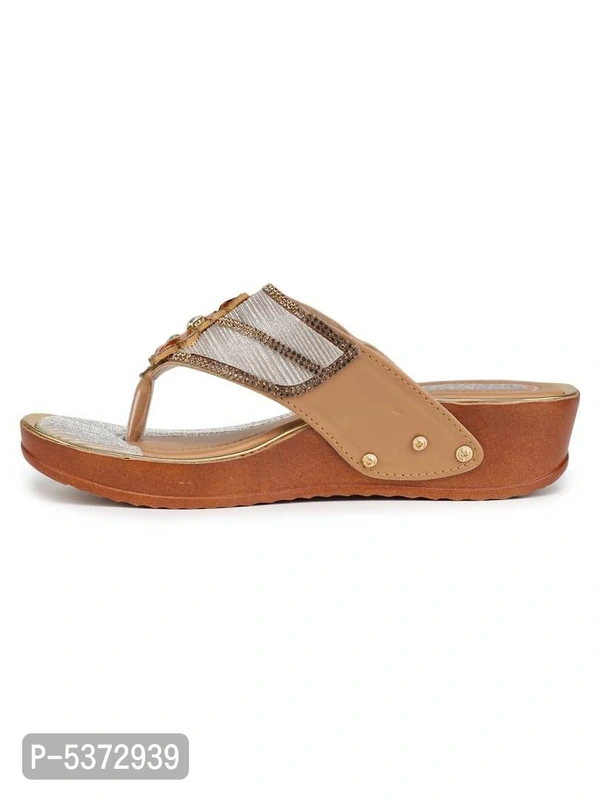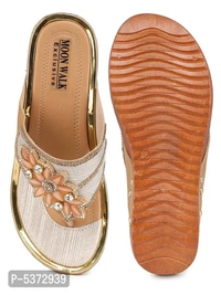 Stylish Golden Synthetic Self Design Open Toe Wedge Heels For Women