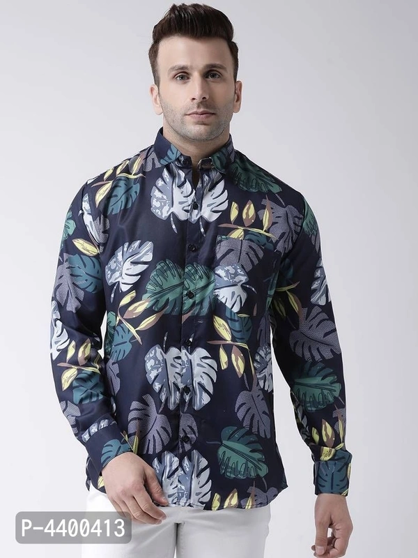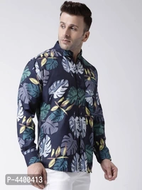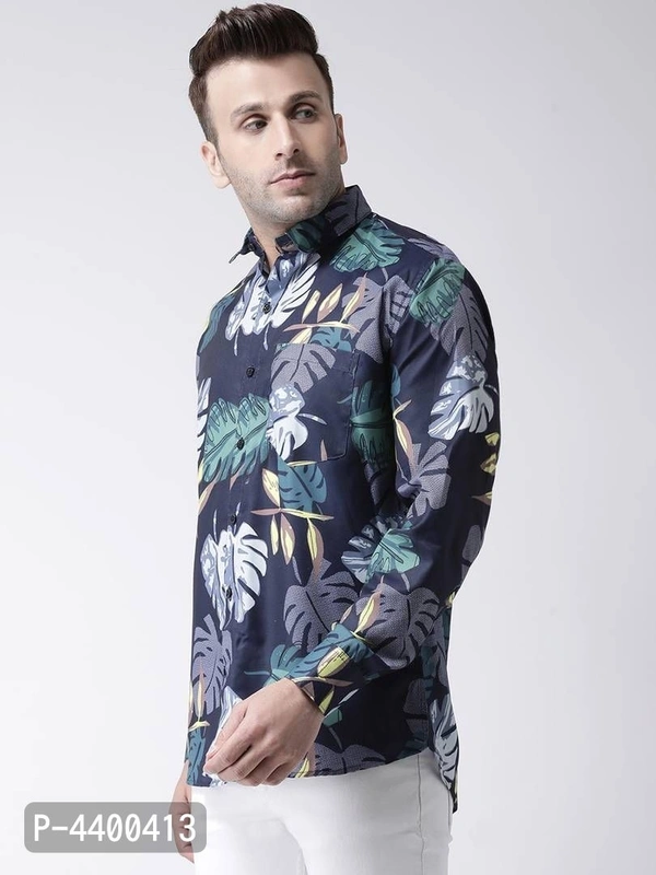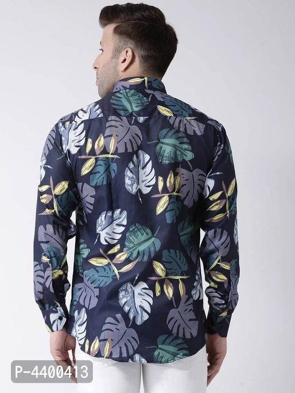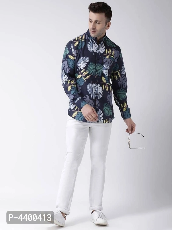 Stylish Navy Blue Printed Cotton Blend Slim Fit Casual Shirt For Men