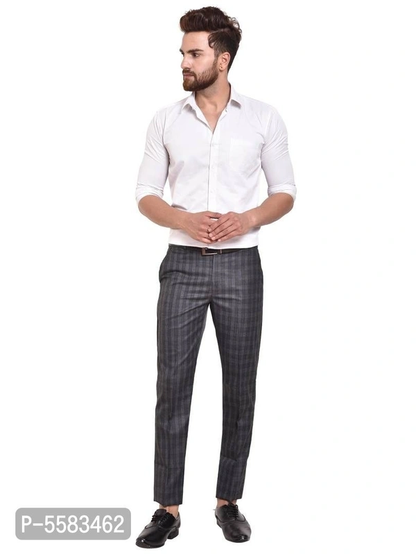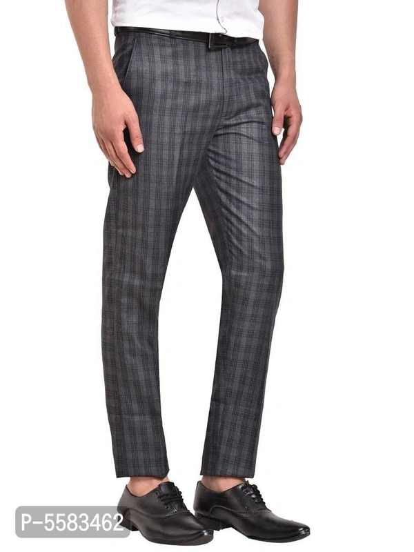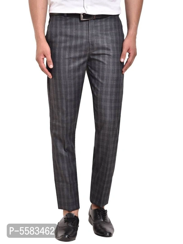 Stylish Polycotton Grey Checked Front Line Formal Trouser For Men