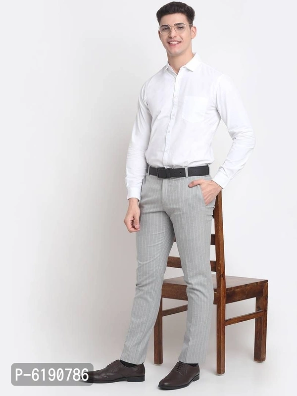 Stylish Viscose Striped Full Length Flat Front Formal Trouser For Men