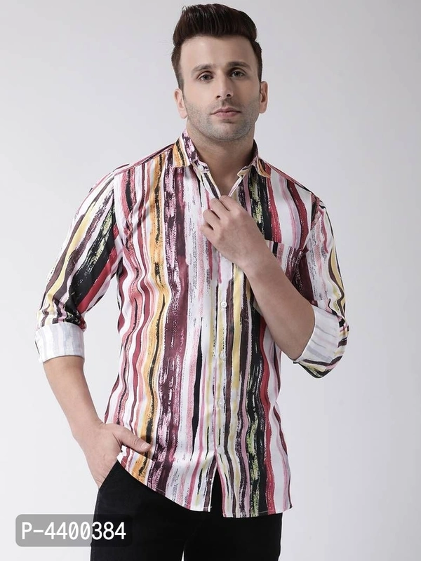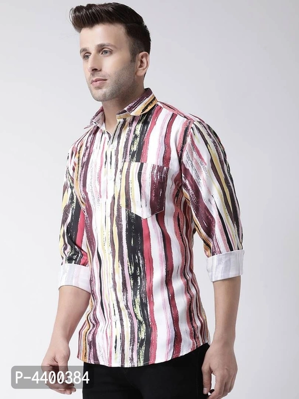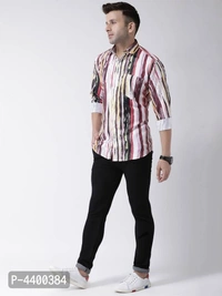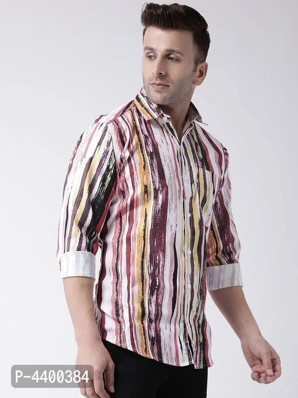 Stylish White Striped Cotton Blend Slim Fit Casual Shirt For Men