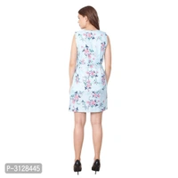 finished with floral prints, this sky blue color dress from the house of My Swag.Crafted from crepe, it will keep you comfortable throughout the party. Its unique design and beautiful colour will fetch a lot of second glances as you club it with contrast coloured pumps and flashy accessory.stylish and tendy,match up with the trending fashion trends with evan's stuning apparel range that compliments your looks.featuring a smart sleeveless sky blue colored crepe dress with casual round neck and floral print pattern that makes it a perfect party pick.The length of the dress is 36". The Lining Inside the dress.