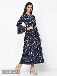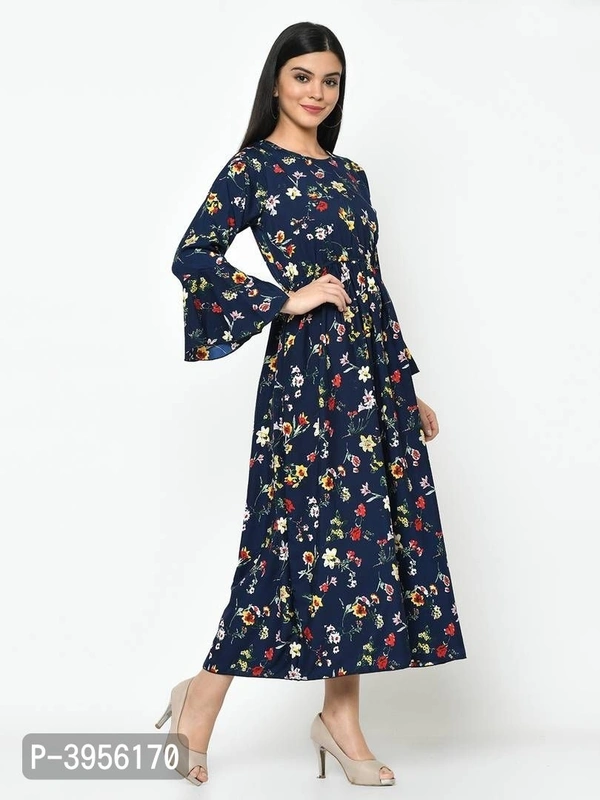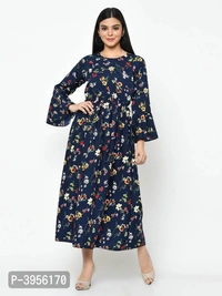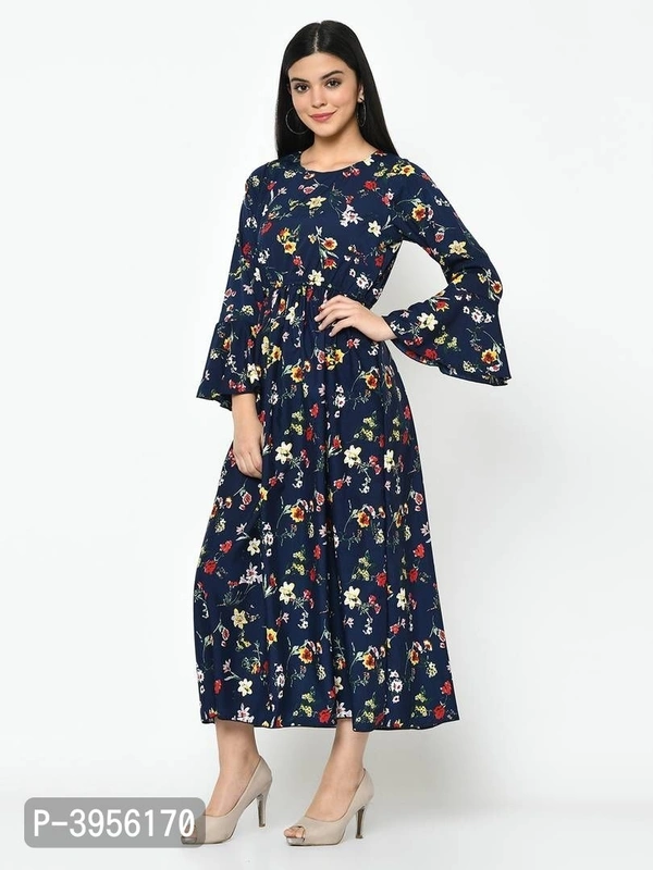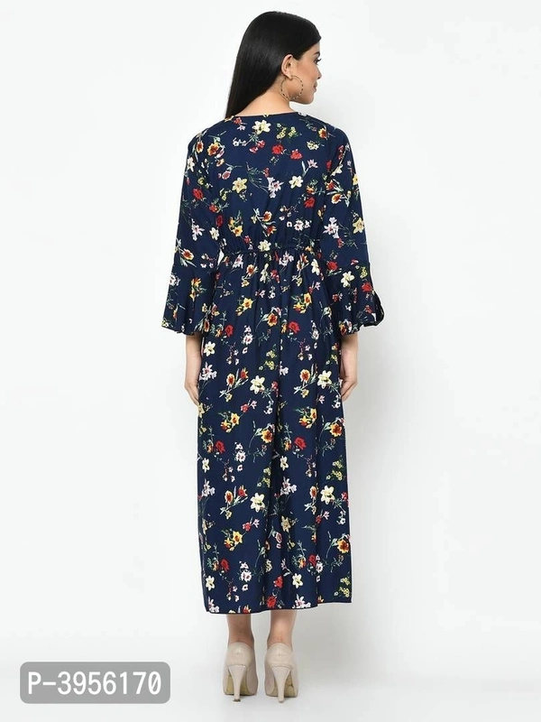 This blue color ruffel sleevefloral printed maxi dress.This Dress will keep you comfortable throughout the party. Its unique design and beautiful colour will fetch a lot of second glances as you club it with contrast coloured pumps and flashy accessory.stylish and tendy,match up with the trending fashion trends with evan's stuning apparel range that compliments your looks.